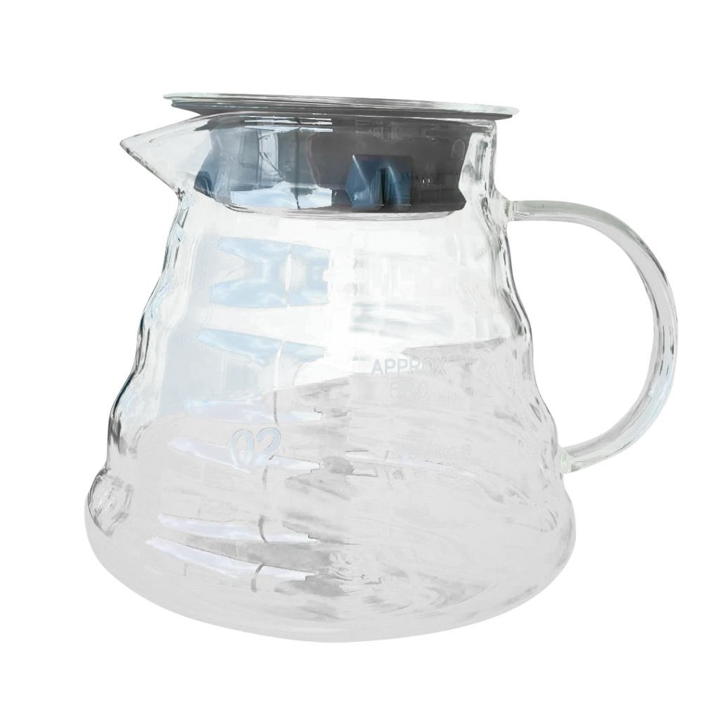 600 ml glass server with excellent heat retention. Its transparent design lets you appreciate the coffee’s color and clarity, ideal for sharing special moments.