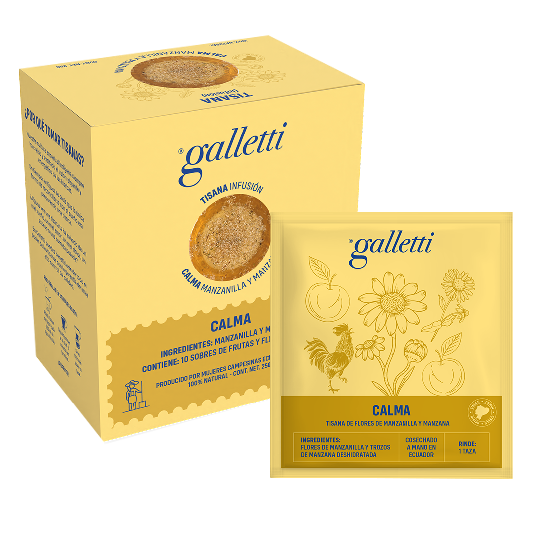 Cada caja contiene 10 sobres de frutas y flores sueltas. Producido por mujeres campesinas ecuatorianas.